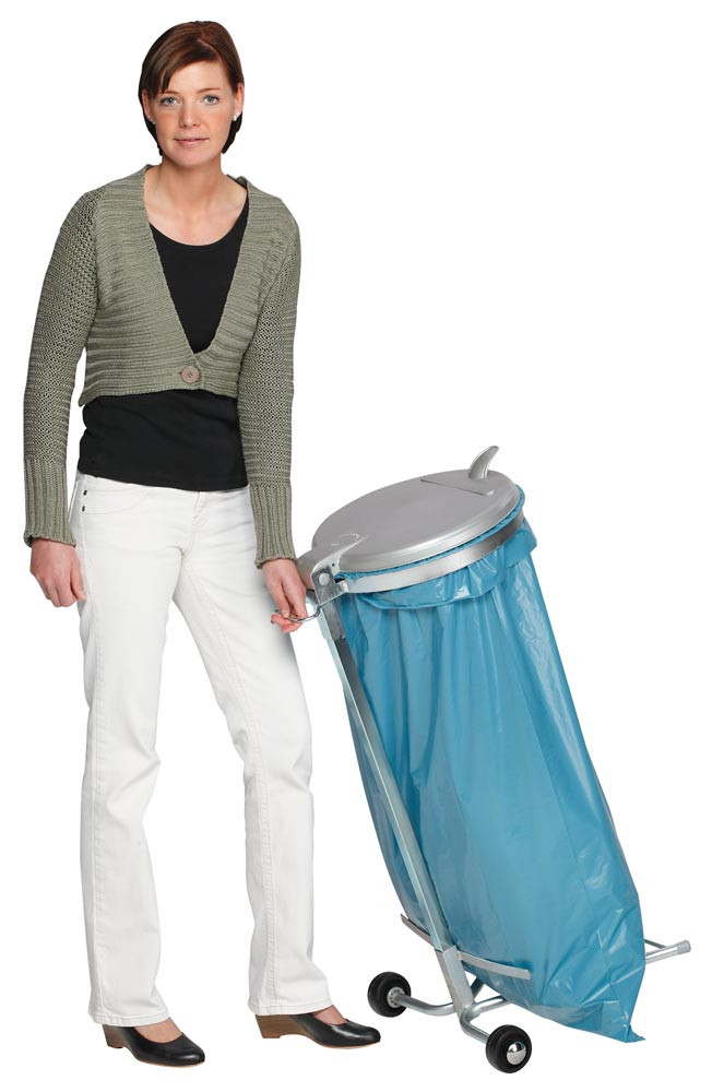 Abfallsammler, mit 2 Laufrollen, 1-fach, verzinkt, Deckel silber aus Kunststoff, BxTxH 460x500x980 mm
