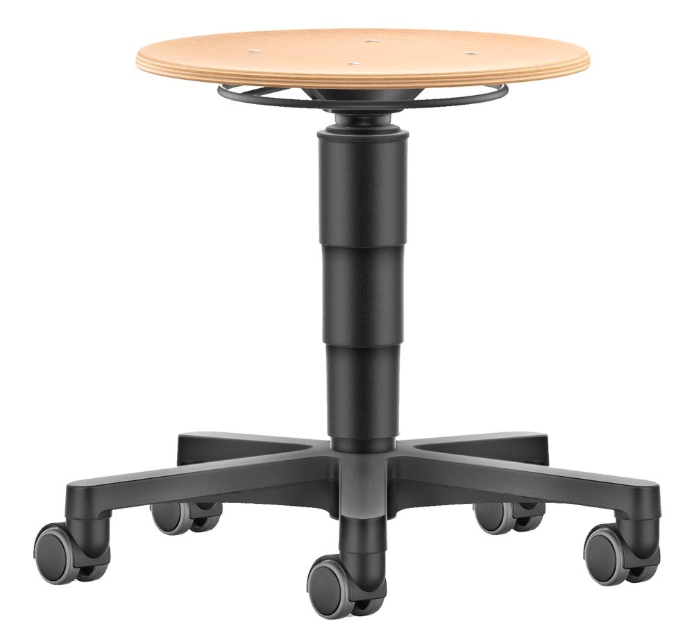 Arbeitshocker mit Gasfeder-Höhenverstellung, mit Holz-Sitzfläche und Rollen, Sitzfläche Durchm. 400 mm, Sitz H 450-650 mm
