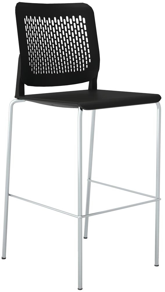 Barhocker mit Fußstütze, stapelbar, Gestell verchromt, Sitz Kunststoff, schwarz