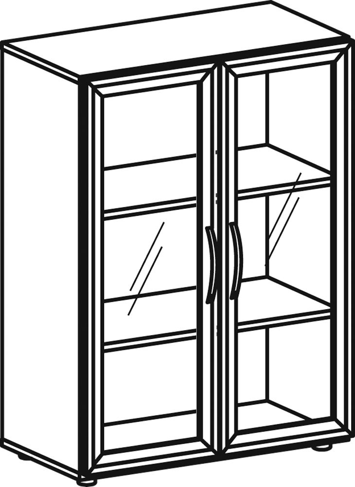 Büro-Flügeltürenschrank, BxTxH 800x420x1104 mm, 3 OH, 2 Böden, Glastüren, Justierfüße, lichtgrau