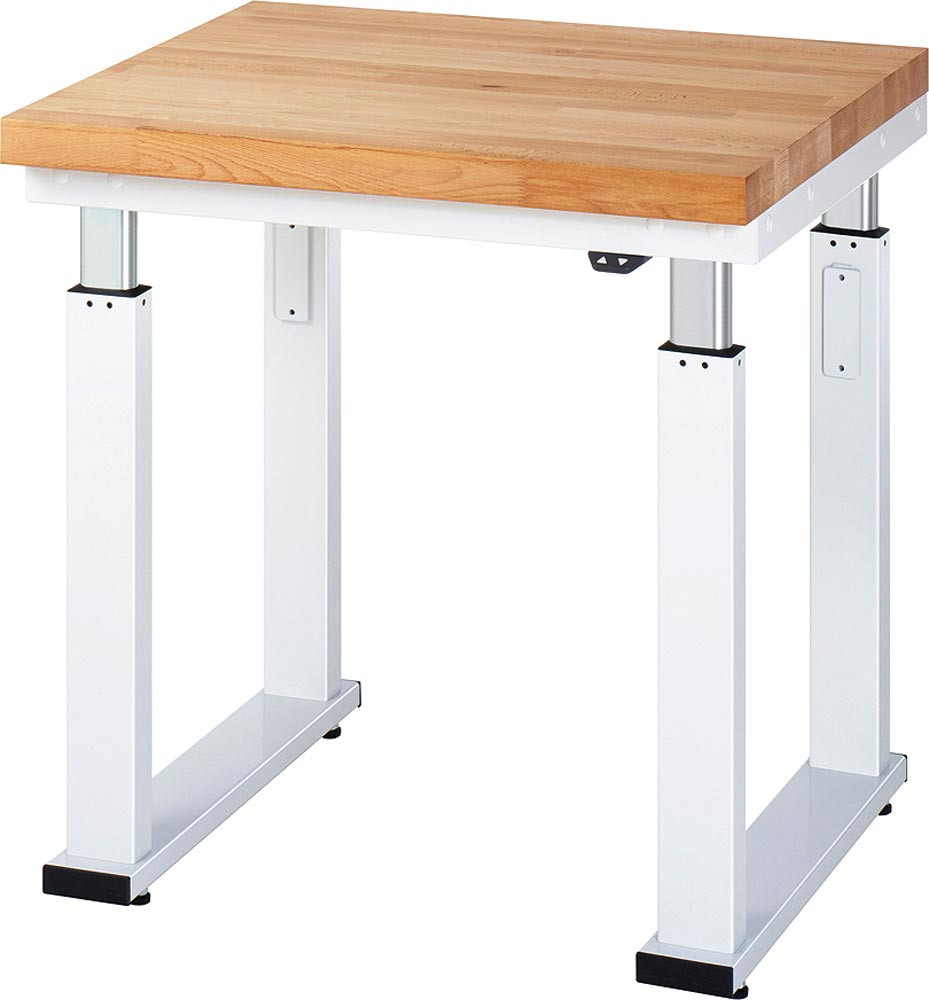 Elektrisch höhenverstellbarer Arbeitstisch, Platte Buche 40 mm, BxTxH 750x700x740-1140 mm, RAL 7035, Flächenlast 600 kg