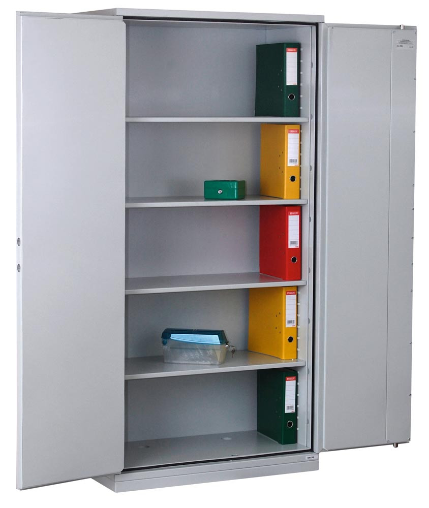 Feuergeschützter Büroschrank, BxTxH 950x500x1950 mm, 2 Türen, 4 Böden, Kapazität 55 Ordner, RAL 7035 lichtgrau