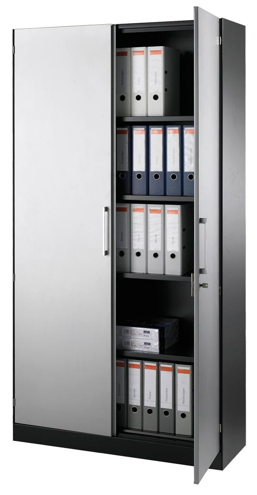 Flügeltürenschrank, BxTxH 1000x435x1980 mm, 4 lackierte Fachböden, Korpus RAL 7021, Front RAL 9006