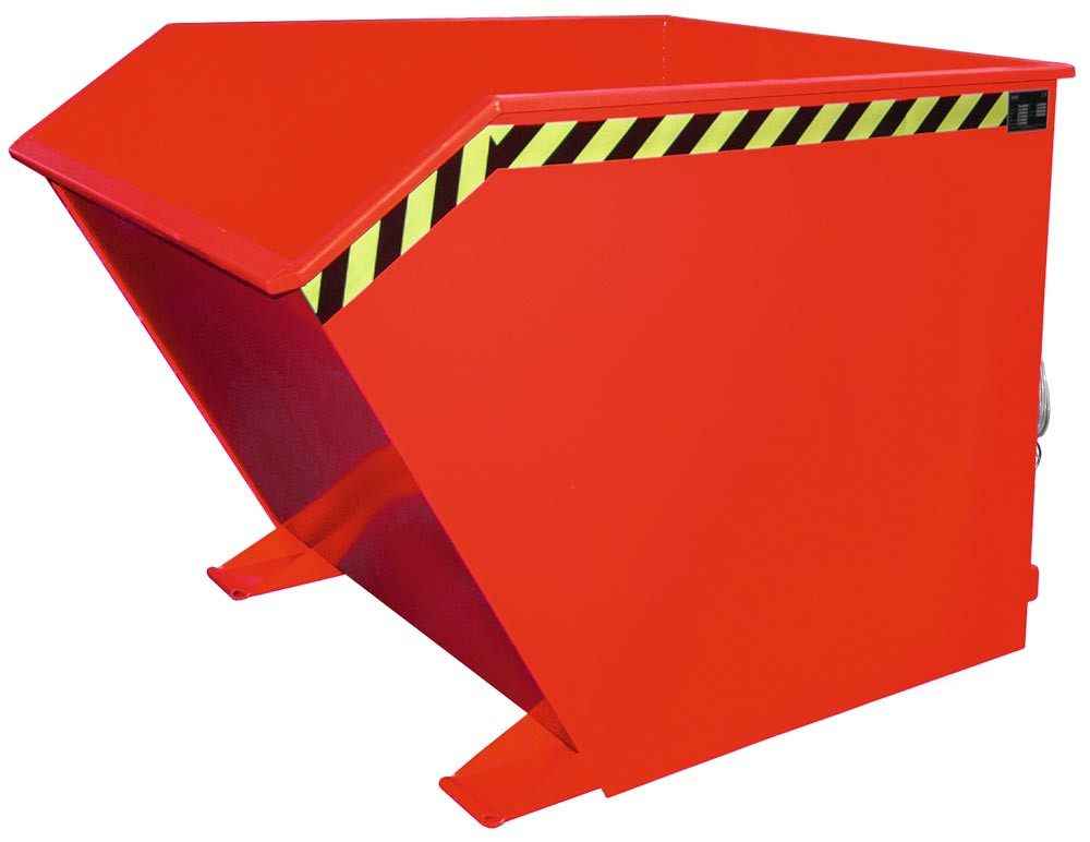 Mulden-Selbstkippbehälter, automatischer Aufrichter, Traglast 1500 kg, LxBxH 1640x1280x1090 mm, Vol. 1,50 cbm, RAL 3000 feuerrot