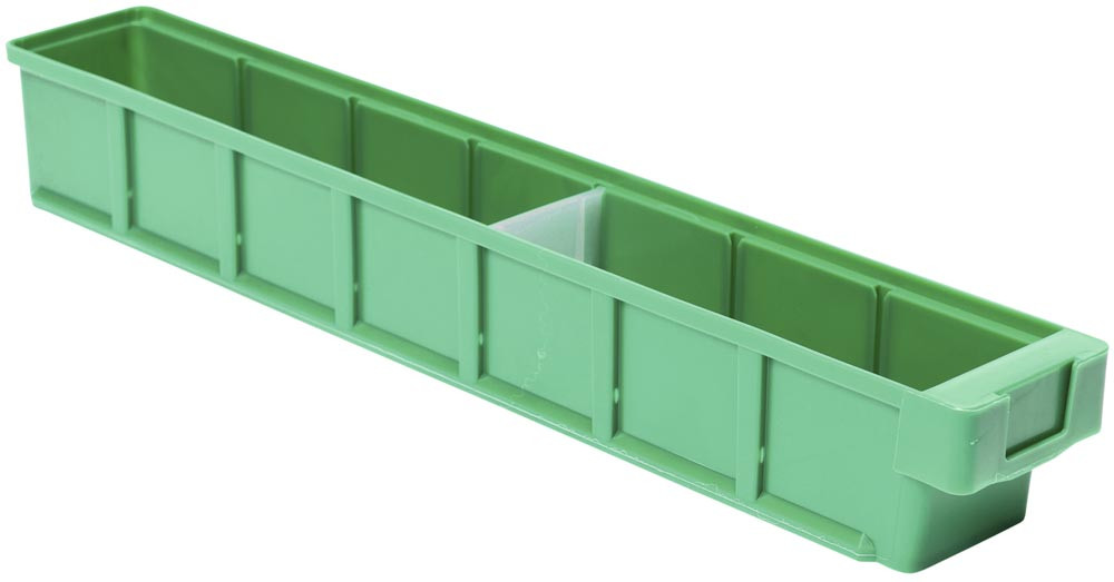Regalkasten, PP, BxTxH 93x600x83 mm, Farbe grün, VE 16 Stück, inkl. 1 Trennwand