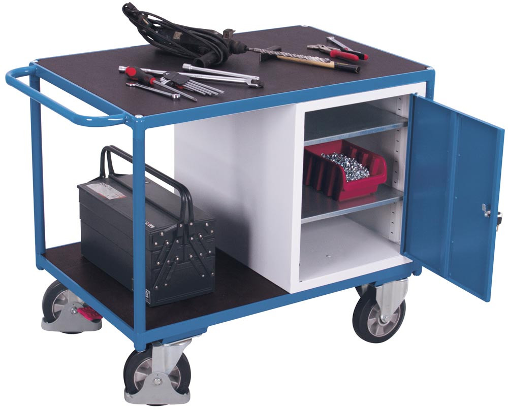 Schwerer Tischwagen, 2 Ladeflächen LxB 995x700 mm, Außenmaße LxBxH 1190x700x925mm, Traglast 1000 kg E1320353