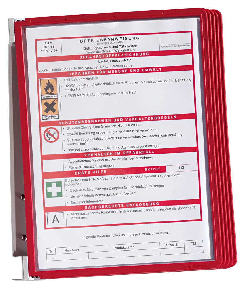 ∙ Epoxidharzbeschichtet in lichtgrau ∙ Inkl. 5 Sichttafeln DIN A4 aus Polypropylen und Befestigungsmaterial ∙ Ideal zur Bereitstellung von diversen Betriebsanweisungen