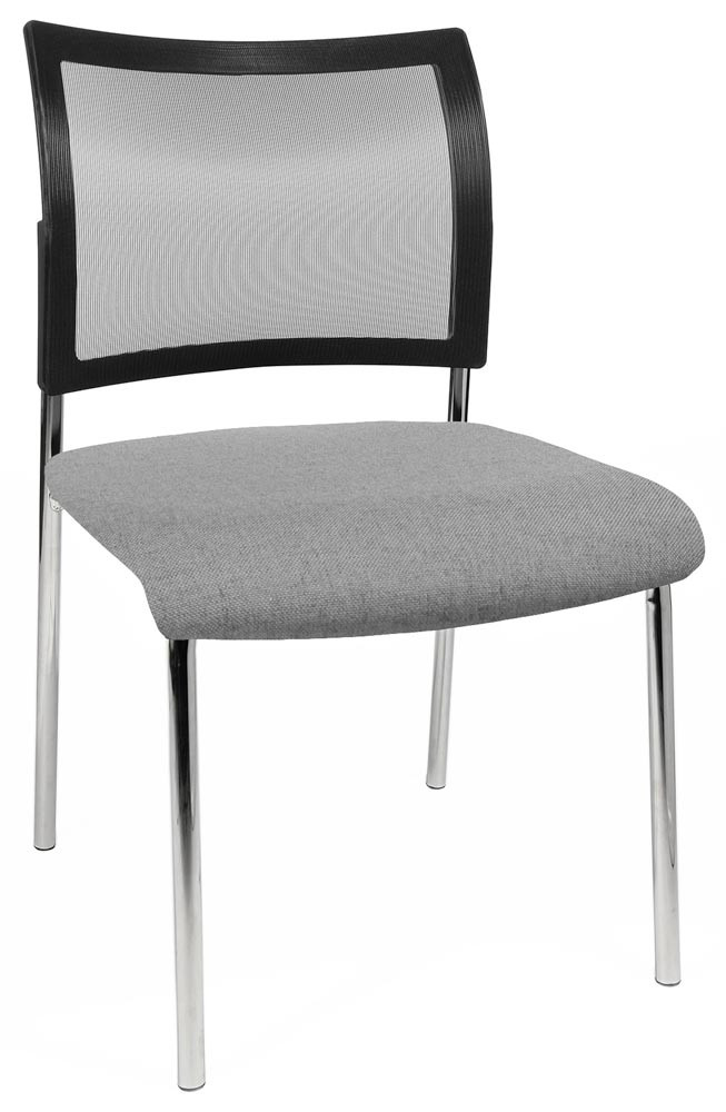 · Ergonomisch geformte Rückenlehne mit atmungsaktiver Netzbespannung und schwarzem Kunststoffrahmen · Bequem gepolsteter Muldensitz mit abgerundeter Vorderkante · Verchromtes Vierfußgestell aus Rundrohr Ø 22 mm · Kunststoff-Fußgleiter · Stapelbar bis zu 2 Stühlen · Armlehnen optional gegen Aufpreis lieferbar · VE 2 Stück