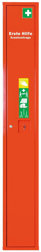 ∙ Aus Qualitäts-Feinblech ∙ Orange lackiert ∙ Eintürig ∙ Verschließbar ∙ Umlaufende Dichtung ∙ Notschlüsselfach mit Glasabdeckung ∙ Siebdruck und Farbpiktogramme ∙ Wahlweise gefüllt oder leer lieferbar