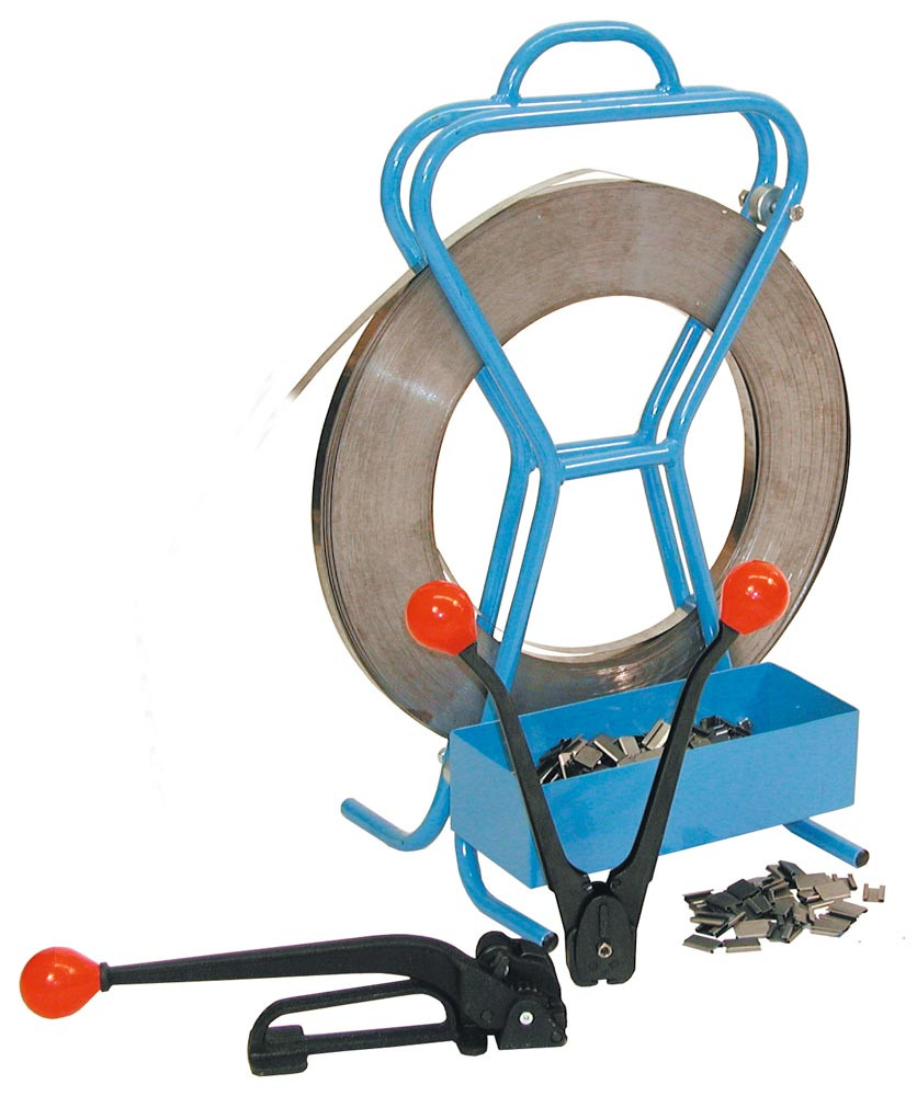 Umreifungs-Komplett-Set, Stahl 16 mm, Spanner, Zange, 240 Meter Band, 1000 Hülsen, 1 Abrollständer