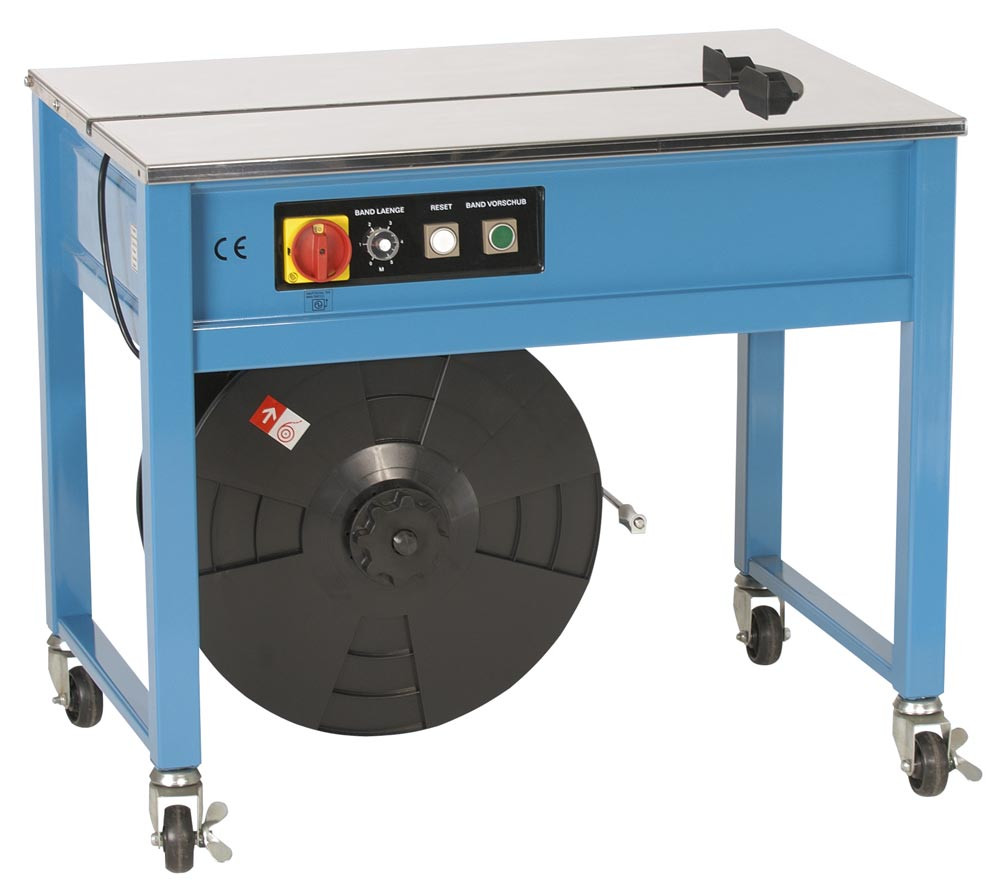 Umreifungs-Maschine PET, halbautomatisch, LxBxH 910x580x770-915 mm, 230V, Gewicht 85 kg