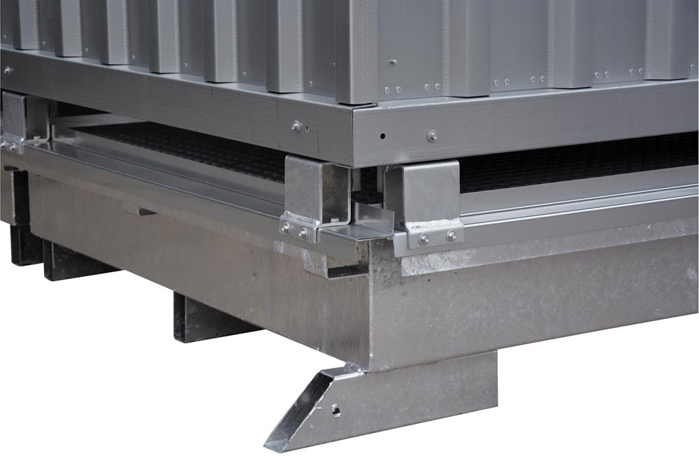 Umweltcontainer, verzinkt, passive Lagerung, für entzündbare Flüssigkeiten, Auffangvolumen 1000 l, BxTxH 3075x2075x2570 mm E1981422